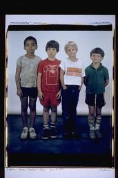 Until 1987, I had the Polaroid 20×24 camera one day a month and so I took pictures of Isaac and his friends sporadically. But beginning in 1987, when the camera came to my studio on Mass Ave in Cambridge, I was able to take pictures of the boys whenever they or I felt like it. All of the boys became familiar with the camera and my routines and they all — off and on — have helped me frame. I like to think each of them has developed a good eye. Now they are 24 and men.